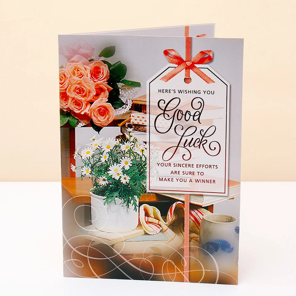 Cheer on your favourite person with this beautifully designed Premium Wishing You Good Luck Greeting Card - a heartfelt and uplifting way to express your warmest wishes, sincerest encouragement, and deepest belief in someone special as they step forward into an exciting new challenge, opportunity, or chapter of their life. Whether your friend is starting a new job, appearing for an important exam, launching a new business, moving to a new city, competing in a big competition, or simply embarking on any new and exciting adventure - this thoughtfully crafted good luck card is the perfect way to let them know you believe in them, you are cheering for them, and you are right behind them every step of the way. Featuring an uplifting and vibrant design with a heartfelt pre-printed good luck message, this card beautifully captures the spirit of encouragement, positivity, and the excitement of new beginnings and endless possibilities.